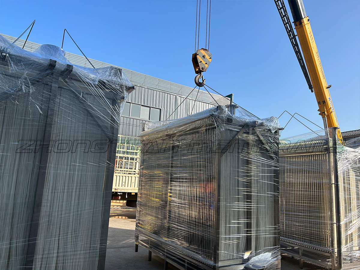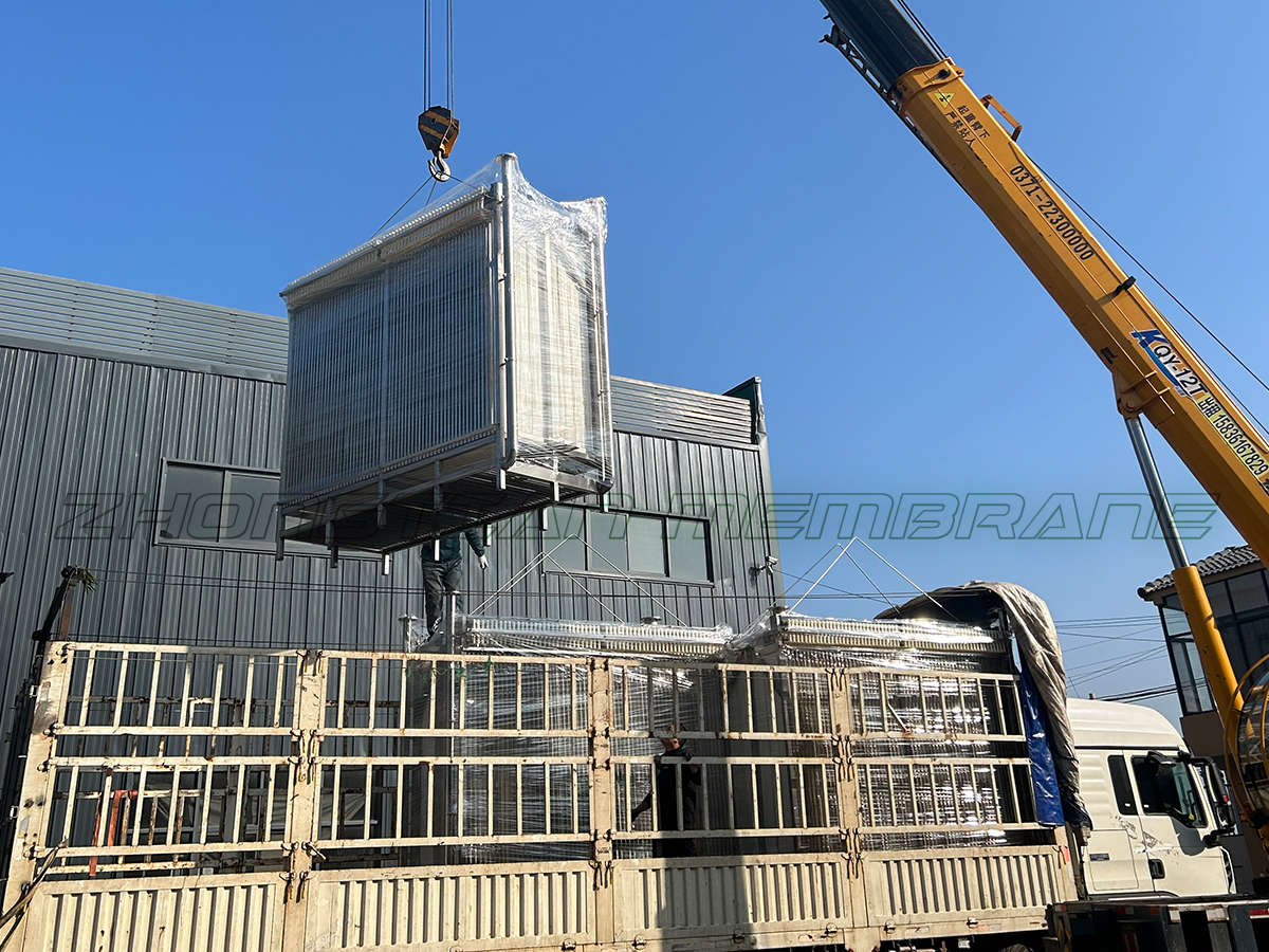 二零二三,新年伊始?! ≡﹦傔^,廠門口滿地的紅屑還未來及打掃,一陣轟鳴聲傳來,一輛平板大貨車緩緩駛?cè)胫刑炷S區(qū)?! ”敬伟l(fā)貨的產(chǎn)品為柱式超濾膜組、RO一級反滲透膜組以及配套的反清洗模塊。從設(shè)計(jì)方案至裝車發(fā)貨,中天膜應(yīng)客戶需求,保質(zhì)保量的前提下加緊生產(chǎn),如期發(fā)貨完成!